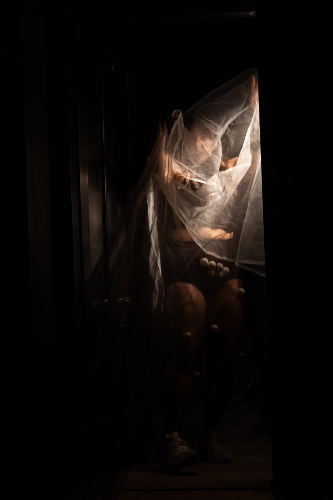 Mytchett is an immersive and site-relational performance exploring themes of childhood, fallible memory and familial relationships behind closed doors. Mytchett proposes an expanded spatial dramaturgy constructed on a practice of ongoing dialogue with the site to facilitate the autonomy and embodied agency of the space. this practice analyses and embeds existing spatial dynamics (ie the perceptual understanding of space in social place-marking) into a multifaceted, experiential dramaturgy within which the audience can freely move.